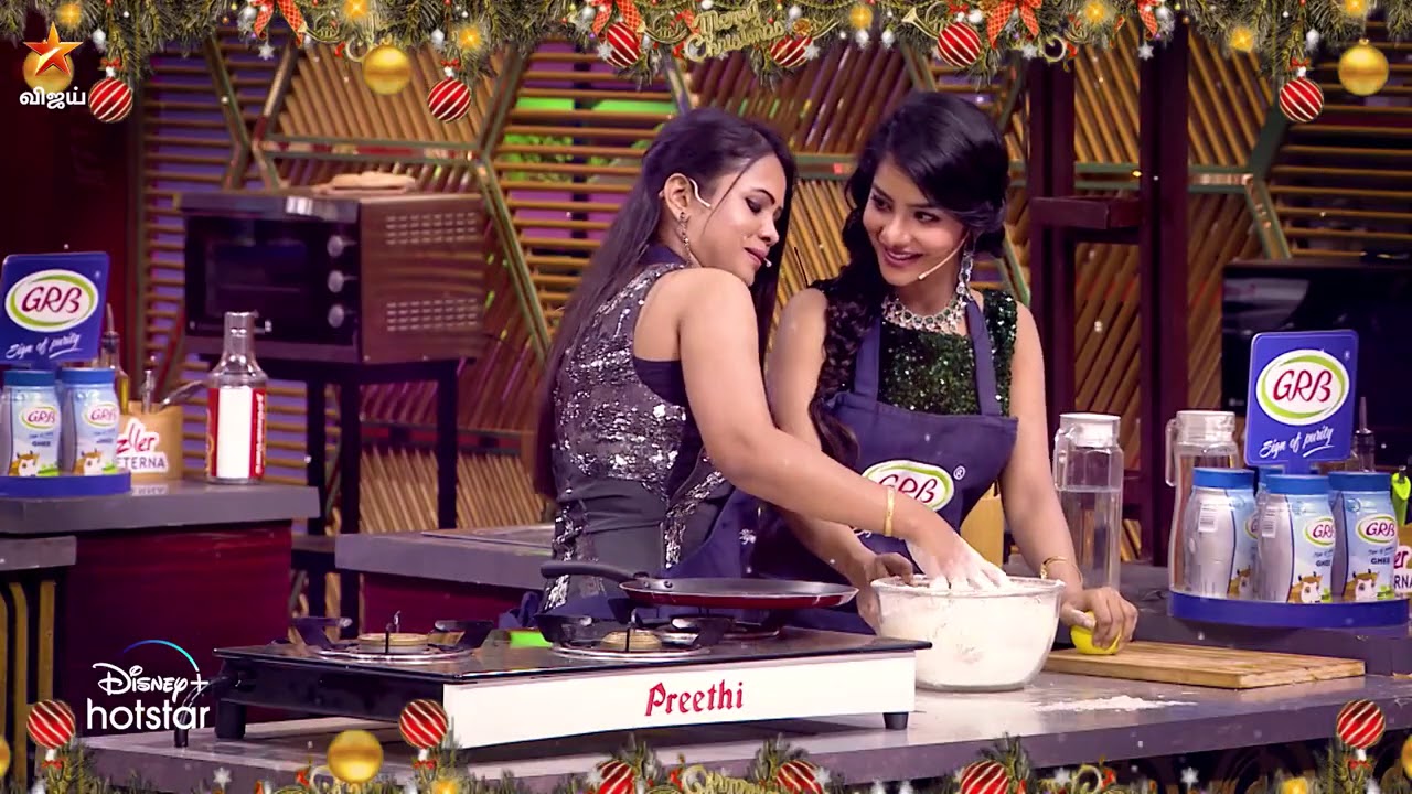 இந்த இரண்டாவது சீனில் நடிகை ஷகிலா, பாபா பாஸ்கர், மதுரை முத்து, அஸ்வின், தர்ஷா குப்தா, பவித்ரா லட்சுமி, கடைகுட்டி சிங்கம் தீபா மற்றும் கனி ஆகியோர் இடம்பெறுகிறார்கள். இந்த இரண்டாவது சீனும் மக்கள் மத்தியில் பெரும் வரவேற்பை பெற்றுள்ளது. இந்நிலையில் இந்த வாரம் கிறித்துமஸ் கொண்டாட்டத்தை முன்னிட்டு குக் வித் கோமாளி நிகழ்ச்சியில் ஸ்பெஷல் எபிசொட் வருகிறது.இந்த ஷோவில் குக்கள் ஒற்றை கையால் நட்சித்திர வடிவில் சப்பாத்தி செய்ய வேண்டும்.Watch the video below.