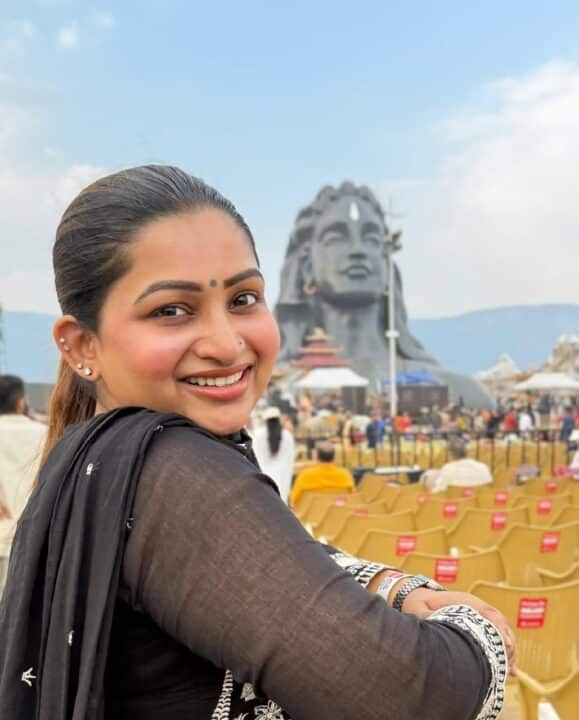 நேற்று கோவை ஈஷா சிவராத்திரியில் கலந்துகொண்ட நடிகை நக்ஷத்ரா நாகேஷ்